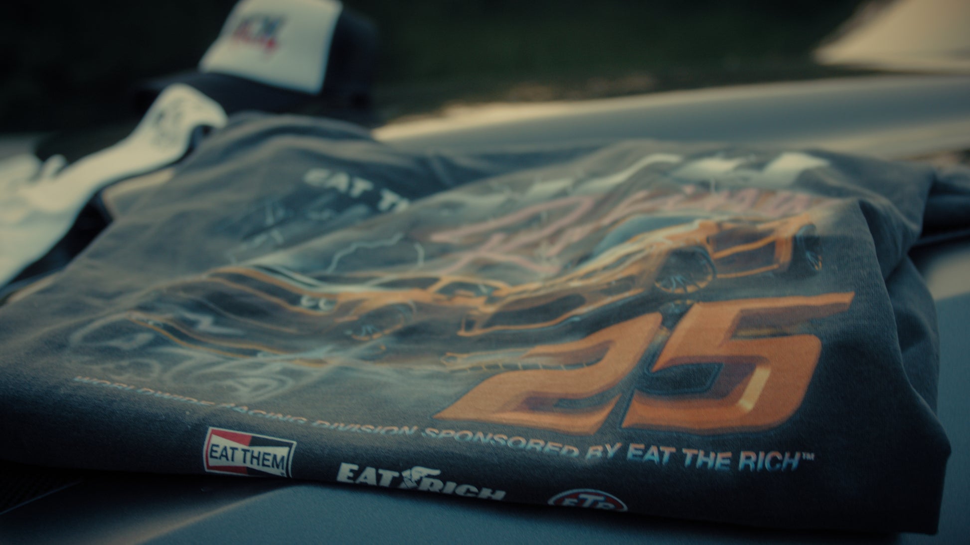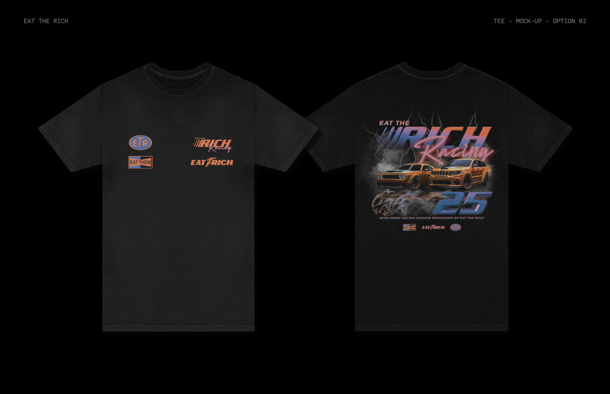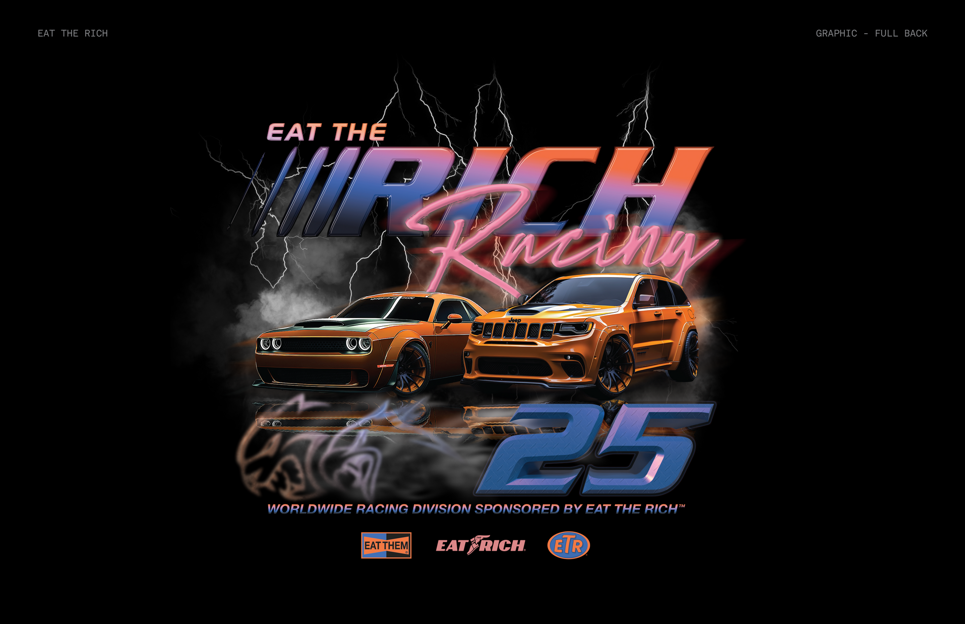 Burn rubber, break barriers. Our Racing Tee reps the relentless drive of the street hustle. Engineered for those who chase paper like they're chasing the finish line—bold, fearless, and unafraid to take what's theirs. Put your mask on, step on the gas, and let them know: we're not here just to compete, we're here to win. Eat the Rich, live the speed.